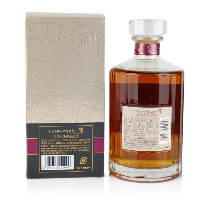 This expression blends malt and grain whiskies matured in a higher proportion of ex-Sherry and Mizunara oak casks than the standard Japanese Harmony. In fact, the Hibiki Deep Harmony emphasizes older components to deliver layers of dried fruit, spice, and incense, creating a more robust yet balanced profile.